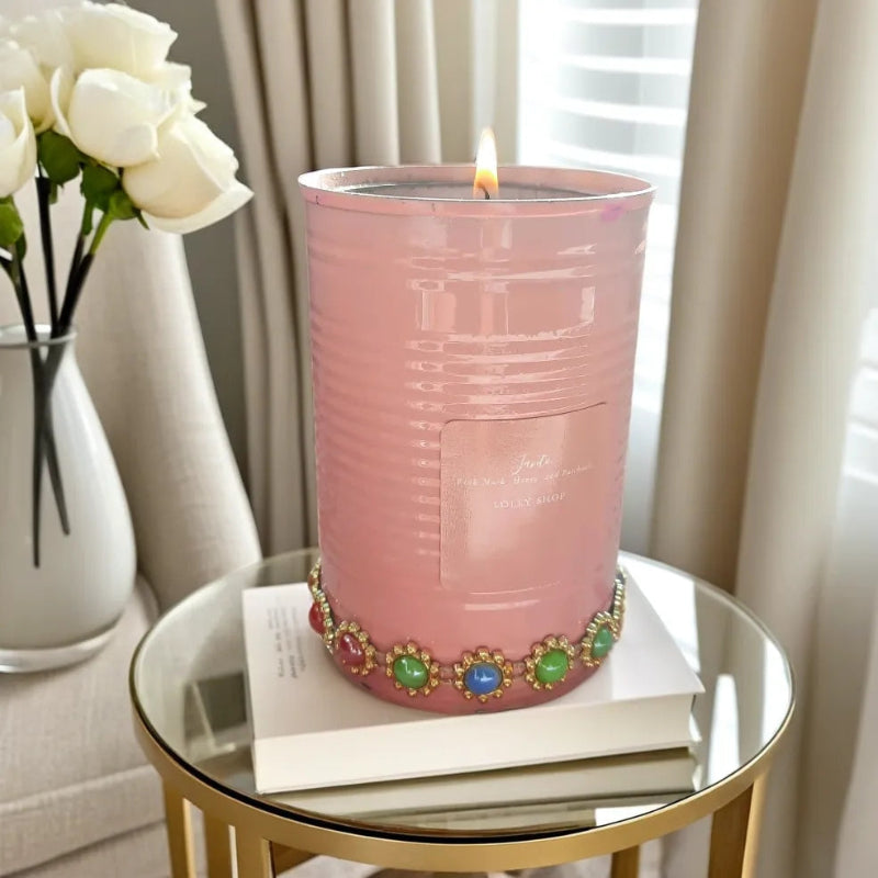 Coco soy candle with cotton wick. Aromas of gardenia, jasmine and balsam. 320g wax; approximately 40 hours burn time. Decorative strip may vary