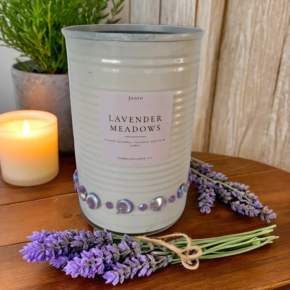 Coco soy candle with cotton wick. True lavender fragrance. Imagine walking through a field of lavender. 320g wax; approximately 40 hours burn time. Decorative strip may vary